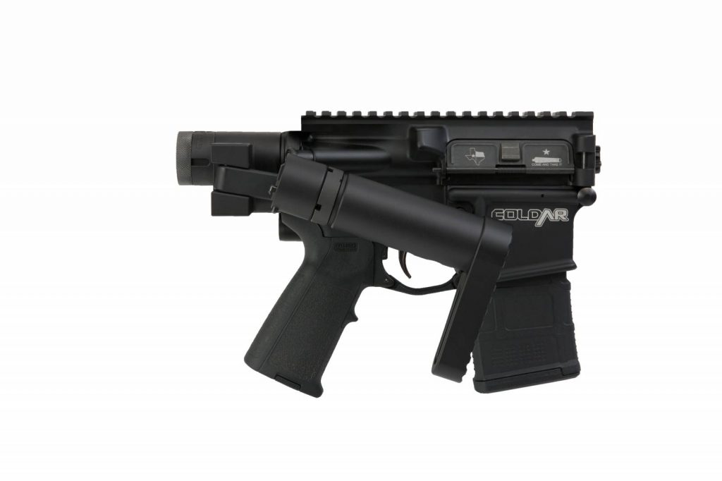 The FoldAr series use a proprietary upper with the FoldAr system that allows the barrel to safely fold and unfold over and over again while properly indexing. The Double FoldAr uses the Dead Foot Arms folding stock/brace system to make a completely folded up AR 15. This reduces the size of the gun drastically and makes it easy to store in nothing more than a backpack. Plus, like the Shrike/MCR upper it’s available to civilians.