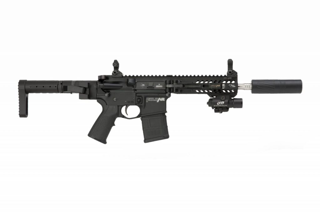 Good Puns will always get points when I choose lists of guns. The FoldAr is both a great pun and a really cool design. As far as odd AR 15s go this may be the oddest. It folds, not just the stock, but the barrel too. Well, technically the double FoldAr will fold at the barrel and stock/brace area. The Standard FoldAr allows you to fold the barrel against the receiver to cut the effective length in half.