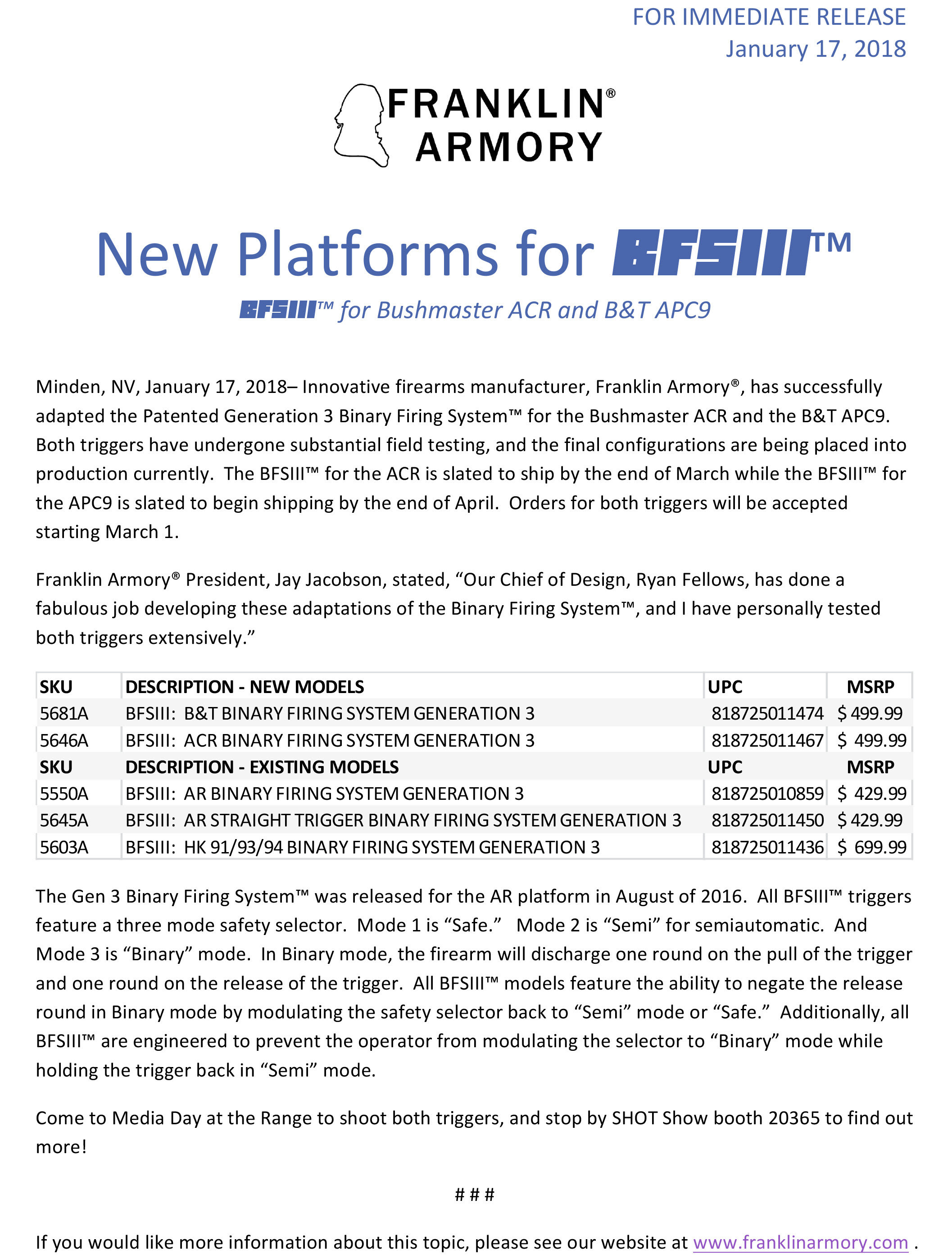 Franklin Armory’s NEW BFSIII™ for ACR and B&T