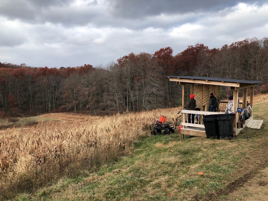 We had a gorgeous weekend in the mountains of western Maryland in mid-November. Friday 5-stand was a bit chilly and windy, and the weather Saturday for the hunt was clear and cold. But once we got our blood moving in the fields and the sun came up it was quite comfortable. The view from the top of the mountain was gorgeous.