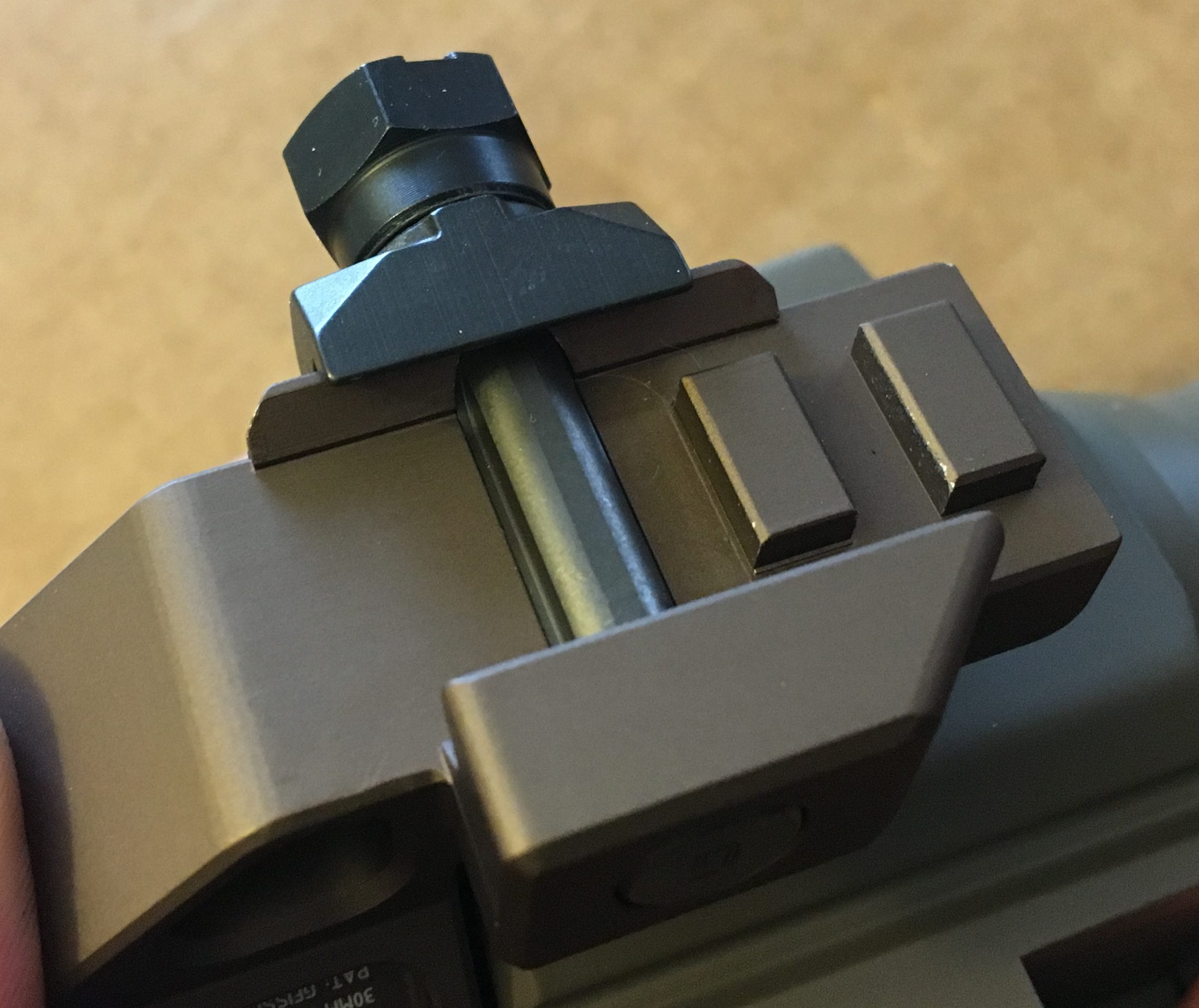 The Geissele eschews all those considerations through added precision and attention to detail of the mounting interface engineering. The trade off is that it is not a tool-less quick release, a few seconds with a multi-tool screw driver or a wrench though and you’re done. No setting, adjusting, and resetting the mount. Loosen the nut, mount to flattop, tighten the nut a little beyond hand tight and the Geissele is set.