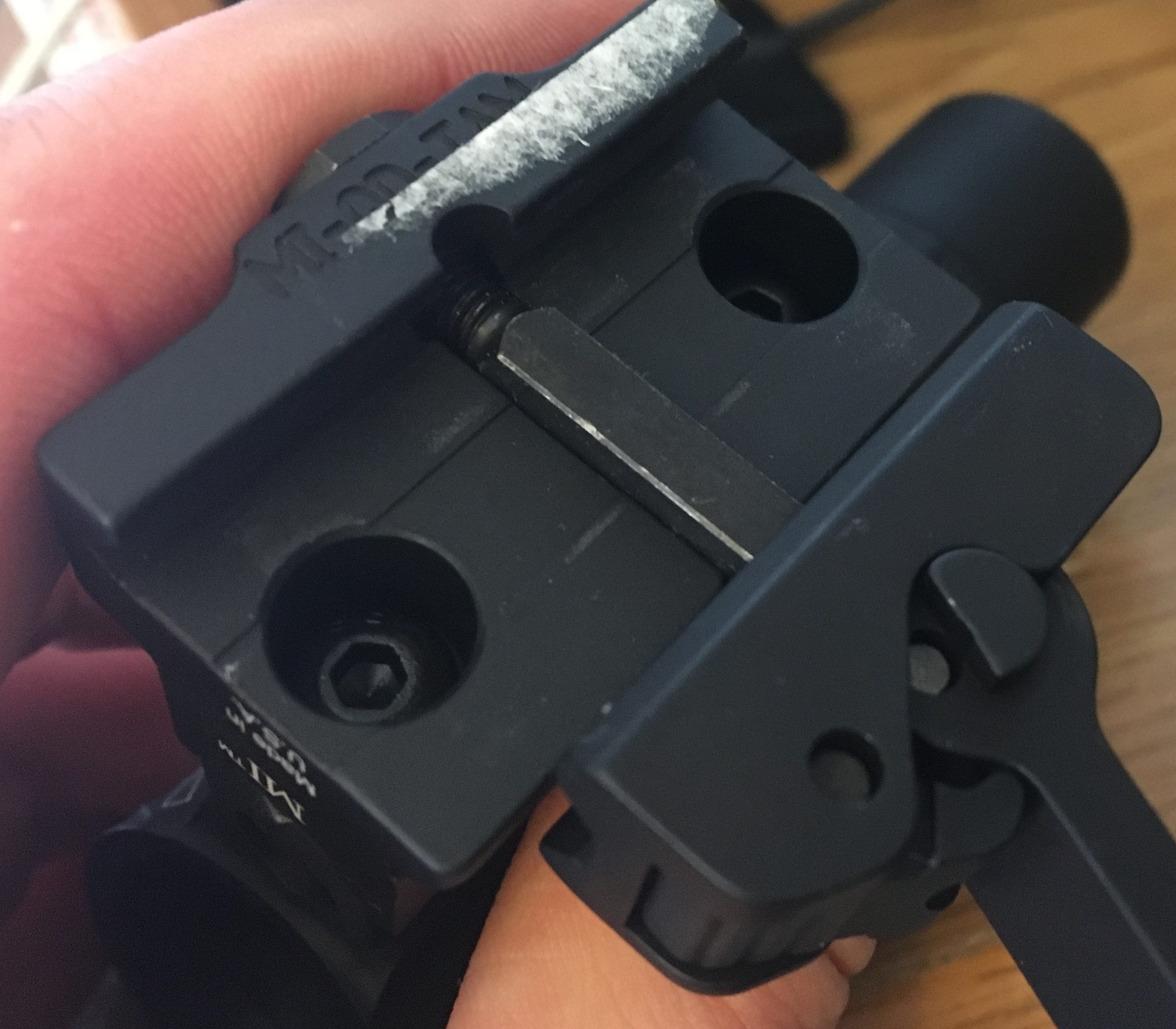 Other mounts recommend that you forward bias the optic in the slot. It will slide forward and backward dependent on how close the anti-sheer lug is to 1913 Picatinny specification. Many lugs are Weaver rail slot specification to allow mounting on a greater variety of rails and this leaves a lot of space for possible movement.