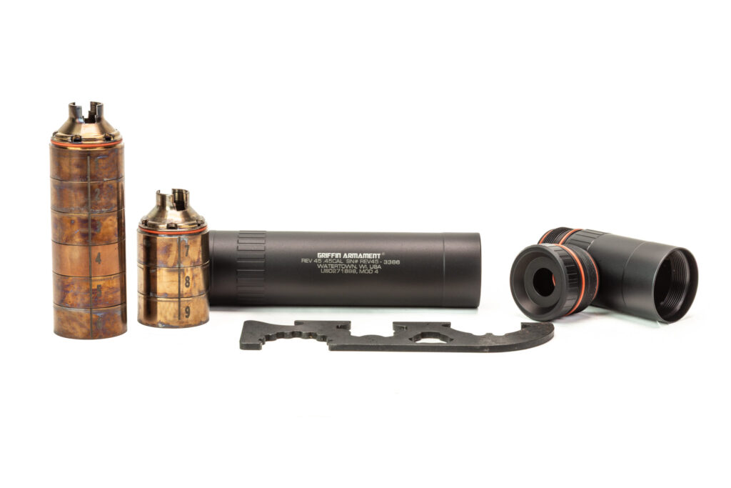 Griffin Armament revamped its Revolution® line of suppressors. The first release is the The (MOD 4) Revolution 45 designed for .45 caliber subsonic rounds, including the .45-70. The MOD 4 is just the latest in Griffin’s line of Revolution suppressors. Read on to see what’s new.