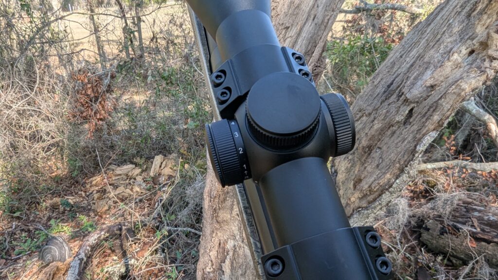 The weight and size aren’t bad. It’s 12.9 inches long and weighs 21.2 ounces. For a budget optic that’s acceptable to me. The ¼ MOA clicks are enough adjustments for hunting and allow a nice tight zero. The zero stuck around and never drifted during testing.