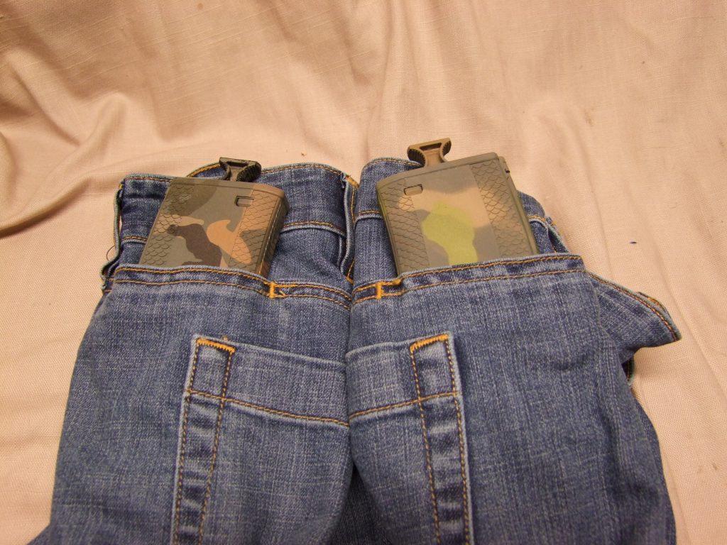 Visually the Defender-Flex Jeans look like any western style jeans complete with orange stitching on the pockets and riveted pockets. They are traditional five pocket styling with added bonuses; there are additional seam pockets just above the rear pockets. These pockets fit AR magazines and similar sized cell phones.