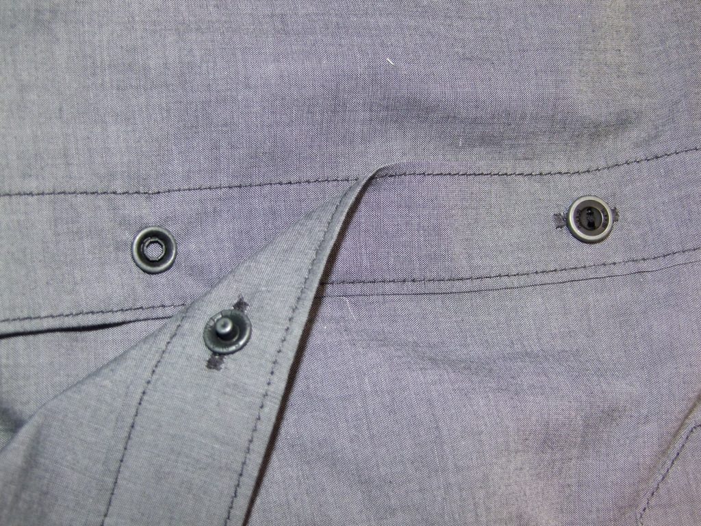 5.11’s RAPID Draw placket looks like sewn buttons, right to the button hole. It is an easy access snap system.