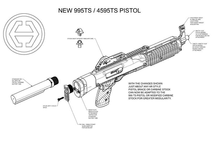 The 995P is the pistol version of Hi-Point’s popular Model 995 Carbine. It’s chambered in 9mm and uses the same 10-round magazine as the carbine and Hi Points pistols. It will also accept the extended Redball 20-round magazine. It has a 13.25-inch threaded barrel, is 20.5 inches in overall length, and weighs 6.5 pounds.