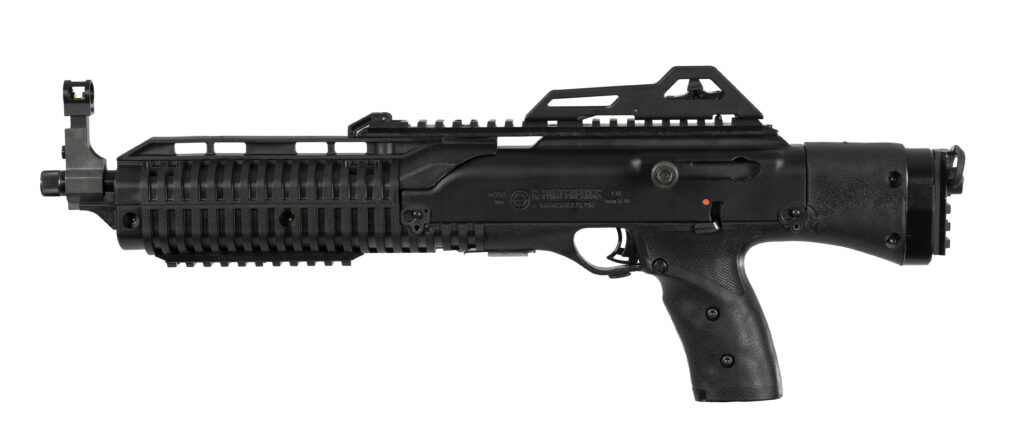 The 4595P is chambered in .45 ACP and is based on the 4595 carbine. It will use Hi Points 9-round, 45 carbine, and pistol mags, or the extended Redball 20-round magazine. It has a 14.25-inch threaded barrel and is 21.875 inches in overall length. Weight on the 4595P is still listed at 6.5 pounds.