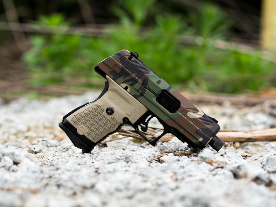 Hi-Points are inexpensive, but they work. They’re made in the USA, and they’re backed by a lifetime warranty. I have a 10mm JXP-10, and it’s reliable and more accurate than it has a right to be. Hi-Points are heavy and chunky, and, well, kind of plain and angular looking, too. That’s where something like the M81 Camouflage dip pattern finish comes in.