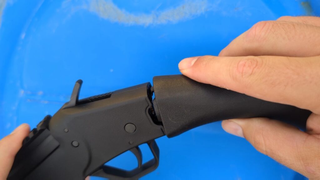 I love shotguns, so I had more than one of these extra grips just kind of bouncing around. The two items didn’t seem impossible to combine. Sometimes, your dreams are only a dremel away. With this in mind, please remember that if you decide to undertake this, you are likely violating the gun’s warranty. It seems like it won’t cause harm, but don’t hold me responsible if this breaks your gun.
