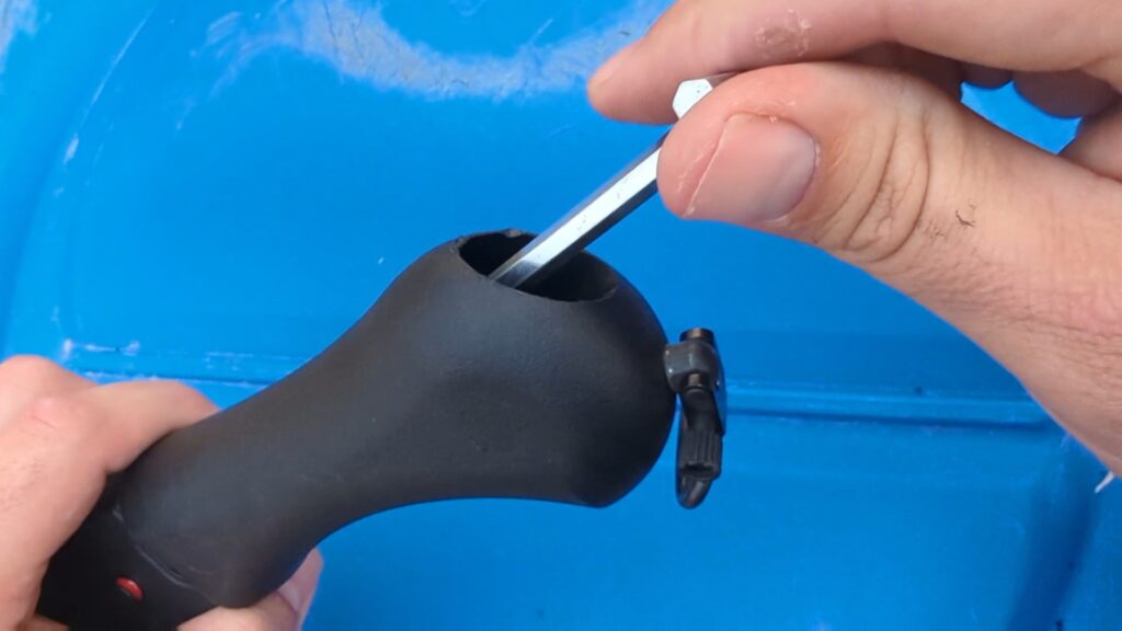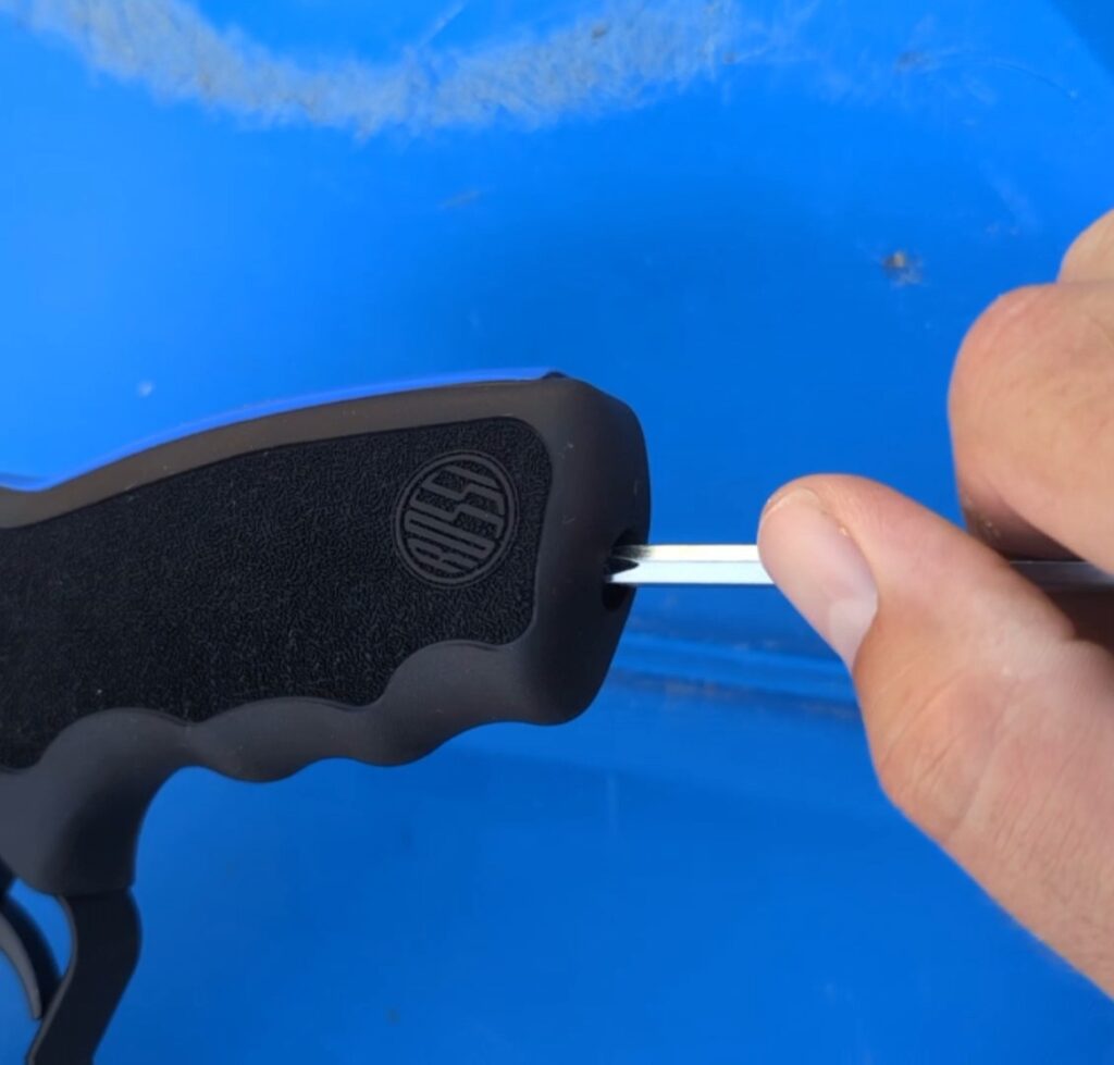 You’ll need a dremel with a cutting wheel, a Phillips-head screwdriver, and two Allen wrenches of appropriate size. I also suggest all proper PPE be worn to use a Dremel. With all this in tow, we first need to remove the grip from the Brawler. It’s very simple.