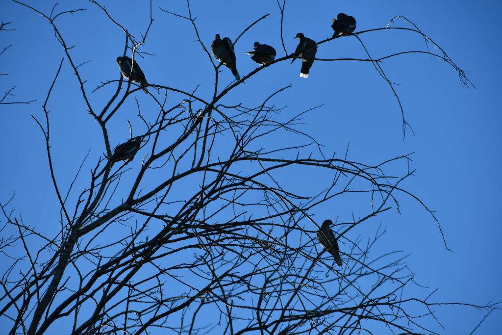 White-Winged Doves resting on branches in the morning after feeding at a nearby field.