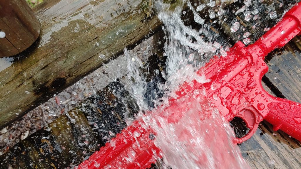 Next, the world’s cheapest red dot to a red gun from ASP dropped it over and over and over on both sides and the top. The dot still worked, and since it was covered in dirt, I gave it a wash. I sprayed it with a water hose and tested its IPX7 rating. Surprisingly the dot didn’t fail either test.