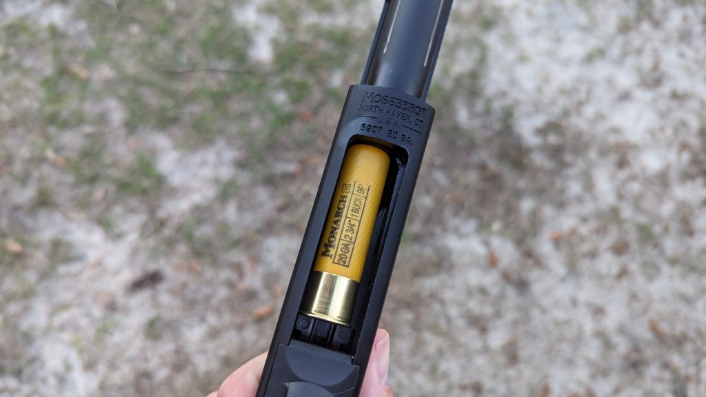 This modern tactical 20 gauge is a rare bird, so seeing Mossberg embrace the smaller gauge was interesting. This isn’t a review of the gun, but I will say it’s a very nice shotgun. It’s fun to shoot, lightweight, and compared to the 12 gauge 590, it’s light recoiling. Mossberg built the 20 gauge model on a 12 gauge frame, so it’s big and plenty heavy. It does provide a lower recoil option than the 12 gauge variant and is soft and easy to shoot.