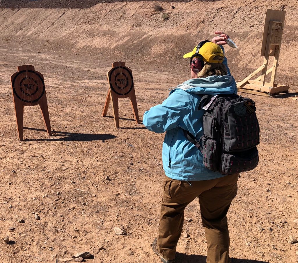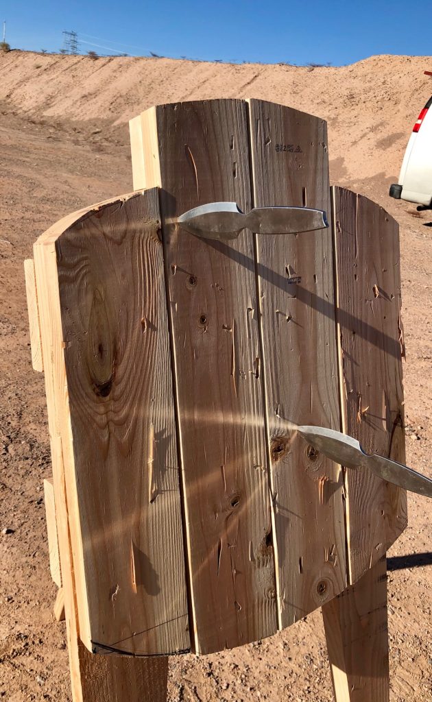 The writer throwing knives at SHOT 2018