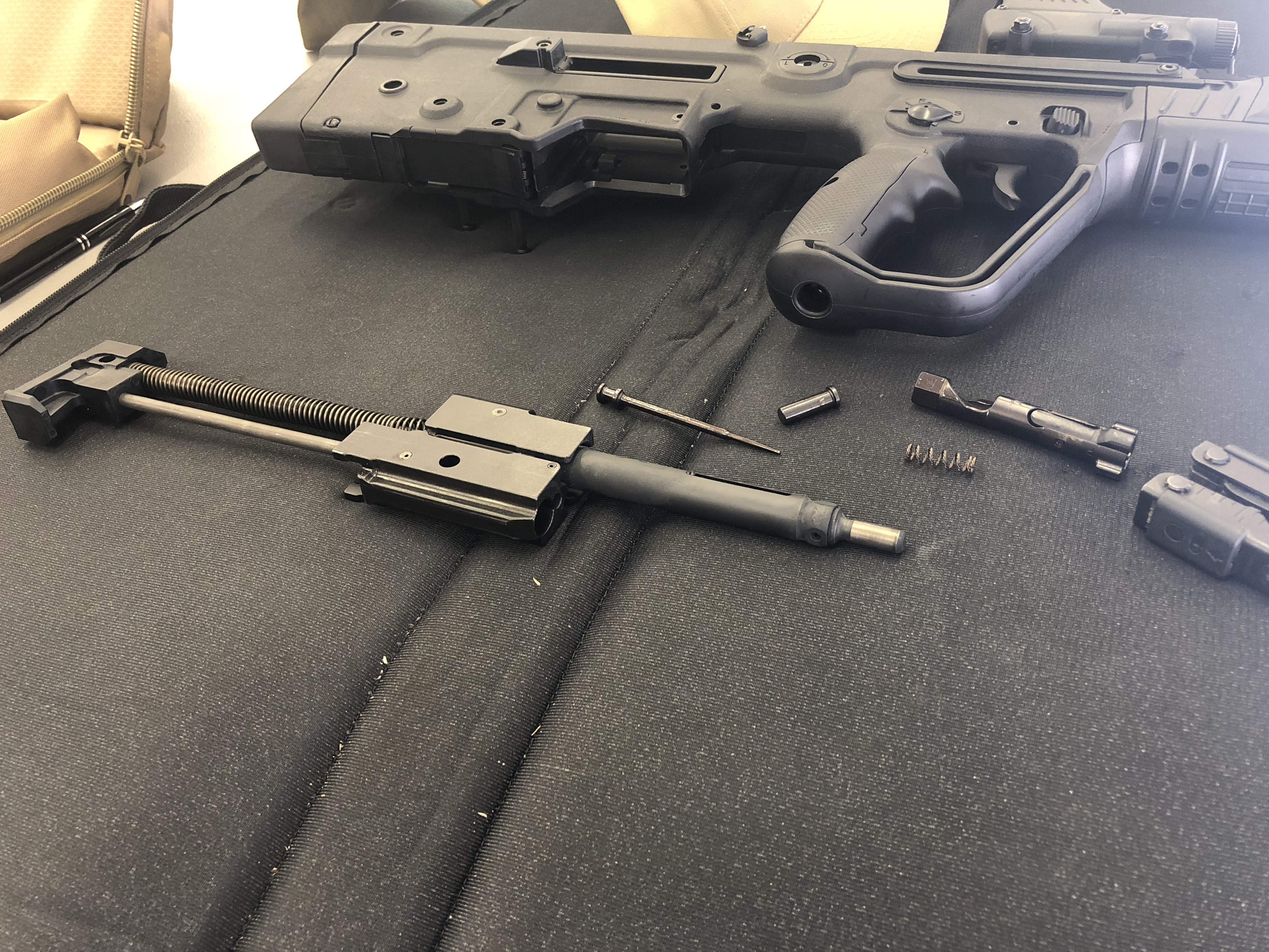 Hands on time we stripped the guns. I cheated a little and got ahead so I could snap pictures. The Tavor and X95 are well designed from a maintenance stand point and field stripping is fairly intuitive. Malcom and Tony covered step by step and helped students with troubleshooting.
