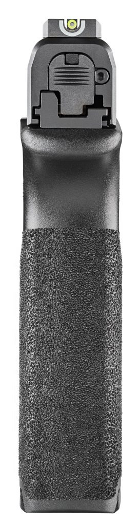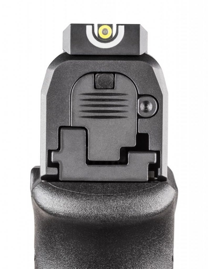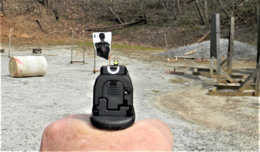 Carried on from the original the front sight features a bright white circle around a self luminous tritium front post. The rear sight is a U notch type with white outline. These sights are excellent personal defense sights. The open notch rear mates well with the front post. Put the post on the target and you have a hit if you have mastered the trigger press. These sights are also capable of fine longer range accuracy. The pistol’s magazine release, slide stop, and trigger are all crisp in operation.