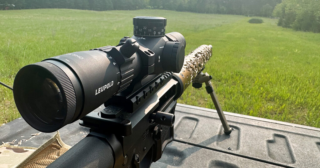I feel like I have explored the outside and the controls. What’s inside? I’m sure you’ve heard the axiom, “If you can’t see it, you can’t shoot it.” Leupold created the 2-10×30 Mark 5HD with their traditional quality, clarity and light transmission capability. With the combination of their AR IMS (Integrated Mounting System), they also leveled up the eye relief game. With the stream-lined mounting system and the lean 30 mm objective, the scope is ideally suited for quick target acquisition in either tactical or hunting scenarios.