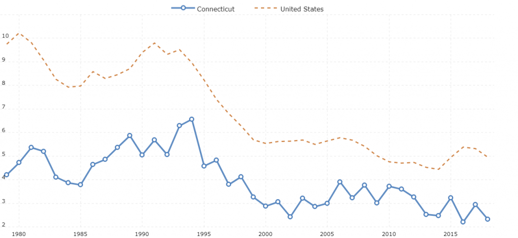 Senator Blumenthal, welcome to the nonsense. What astounding success in Connecticut? Sure the homicide rate is below average but it tracks with the national trend. You’re also in a state with a much higher than median average income. No? That would be ist-ish or phobic to imply? Connecticut residents earning, on average, 21% more than the national average, could that have something to do with lower rates of violence or no? Economic stability isn’t a substantial social factor in determining likelihood of use of violence as a currency, right?