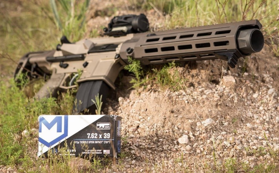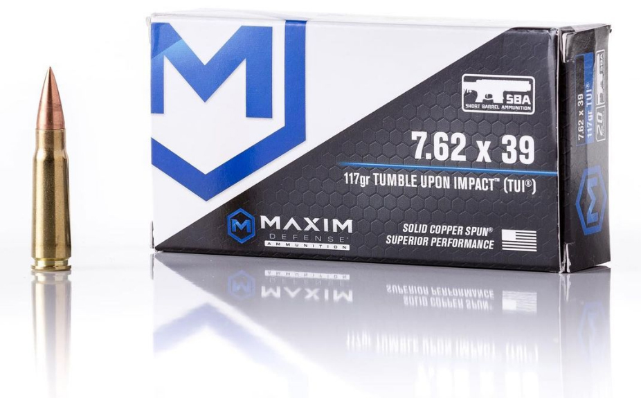 If that particular type 7.62×39 doesn’t suit, Maxim Defense also offers its own ammunition: the “TUI” (Tumble On Impact) line. TUI ammunition is a solid copper spun line design explicitly designed for short barrels in mind. They’ll handle light recoil with no sacrifice in velocity, and because of the solid copper construction, they can be used wherever lead projectiles are prohibited for sport shooting. The Maxim Defense TUI SBR ammunition is 117gr SCS and ships 20/box.