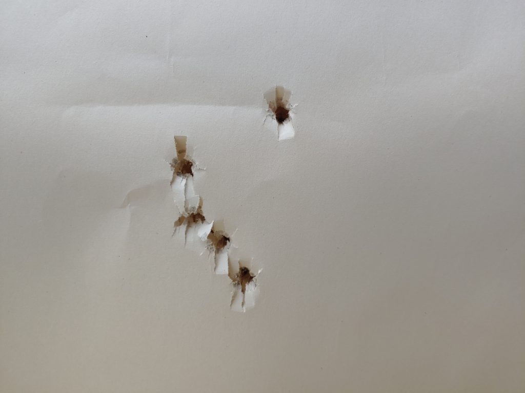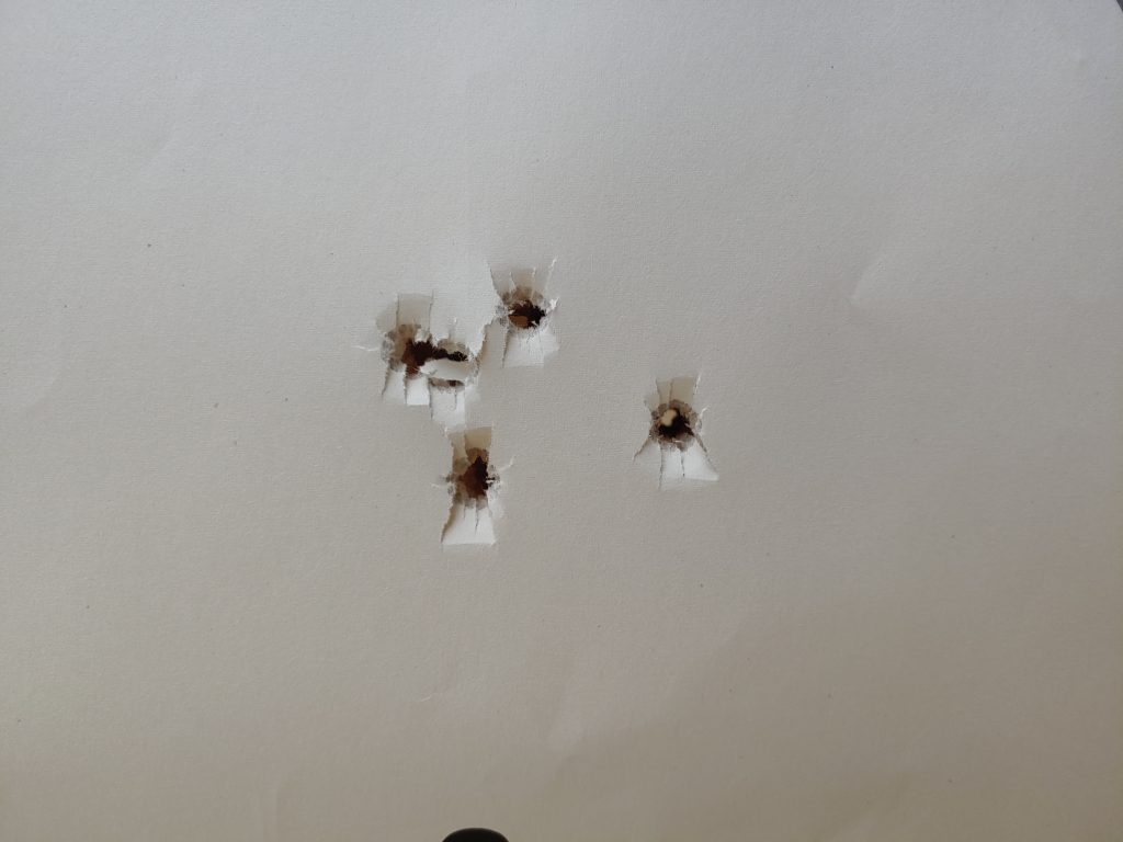 I moved to the fifteen-yard line and repeated the test with 3 shots in 3 seconds. The groups shrunk for the Scorpion to 1.75 and the Copperhead was still roughly 2.5 inches.