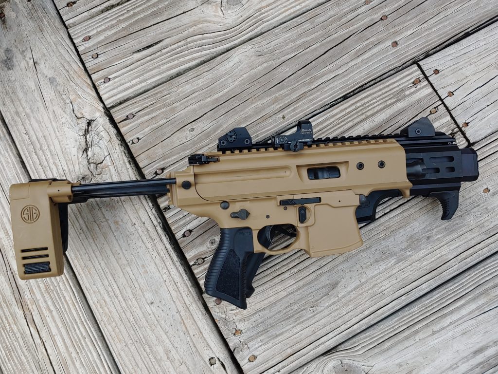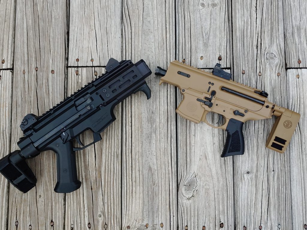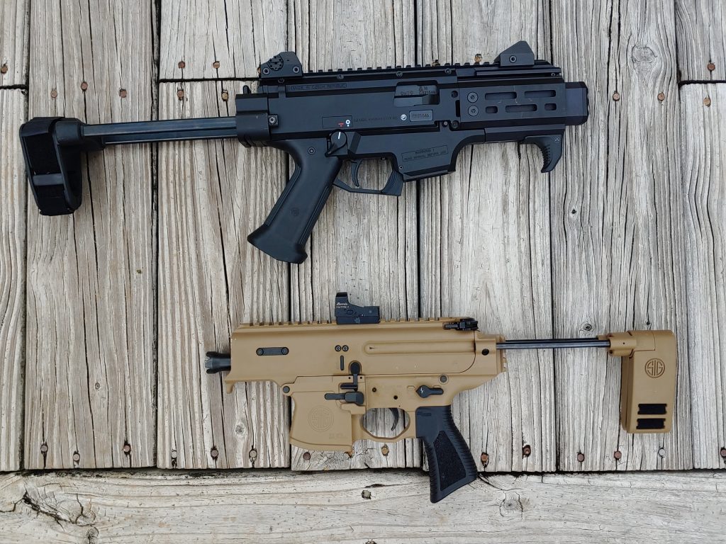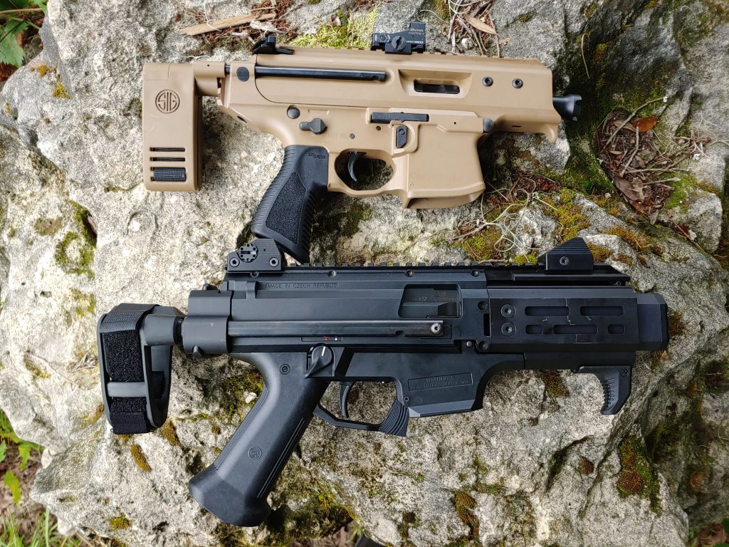 Here we are going to look at what the guns come with and how they come out of the box. The CZ Micro Scorpion comes with two 20 round magazines, a bore snake, the included brace, and a set of robust iron sights. The SIG Copperhead comes with a single 20 round magazine and SIG’s new brace. There are no included iron sights or extras.