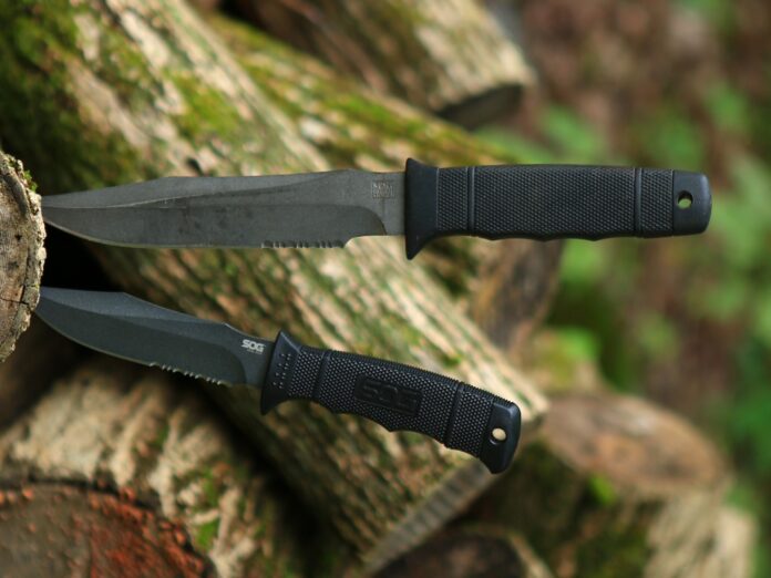 The SOG Navy Seal 2000 Knife was crafted specifically for the elite U.S. Navy SEAL forces. This knife can handle harsh conditions and performs excellently in combat and survival. It measures 12 inches overall and has a 7-inch blade that’s a solid 0.25 inches thick. Made from AUS-8 stainless steel and finished with a hard-cased black TiNi coating, it resists corrosion and stays sharp longer.