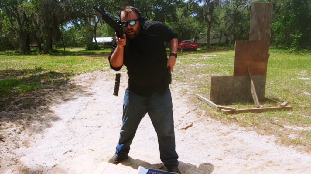As we talked about above the Modern Warrior Project is big on tactical reloads and they are an important skill to have. I left a round in the chamber and reloaded with 1 round in each magazine. Tactical reloads are trickier with a handgun, but here is where having big hands helped me. I pocketed the magazine to retain it. I got to a full presentation and fired a round to end the drill.