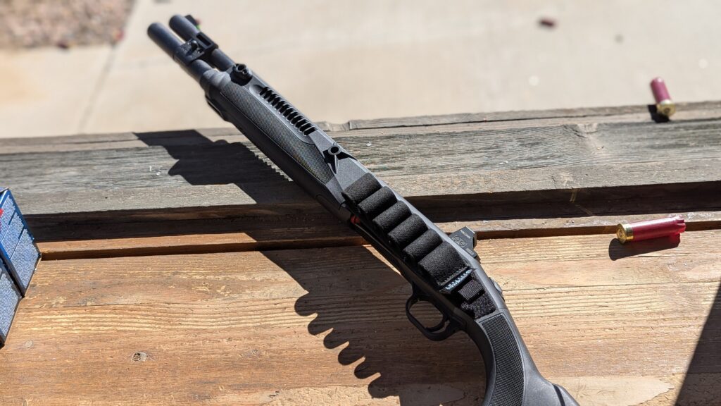 The gun cycles rapidly and dependably ejects shells left and right. Dropping eight rounds out of the gun takes no time at all, and if you have to fire eight rounds of twelve gauge, you want them dispersed quickly.