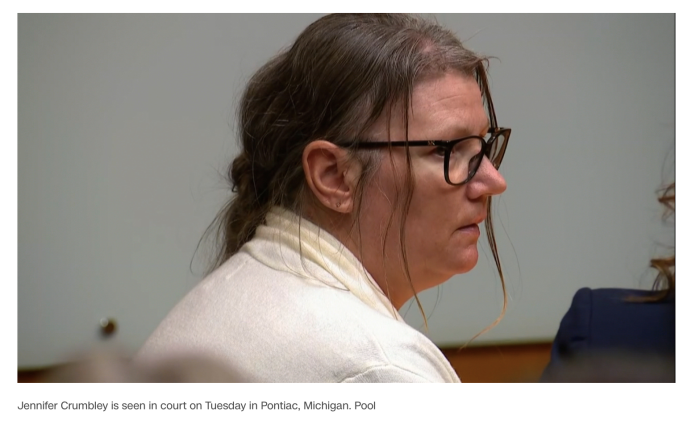 Image of Crumbley via CNN, she was found guilty of 4 manslaughter counts