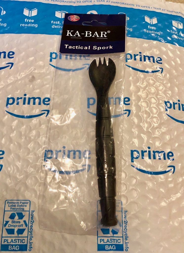 Yeah, so I just bought a spork/knife combination on Amazon so I could have some type of eating utensil in my get home bag. The spork happens to have a serrated plastic knife in the handle. And it’s black. I guess that makes it an “Assault Spork”. Yeah, scary – woooooo.