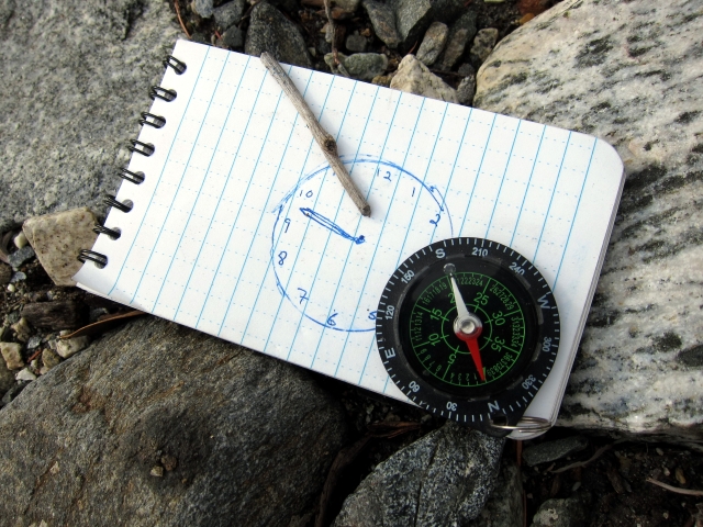Finding direction can be as easy as using the shadow-stick method. Just grab a three to four-foot stick and poke it into the ground in a sunny spot. Sharpen the top if you want a clearer shadow—if it’s rocky, a good whack with a rock does the trick.