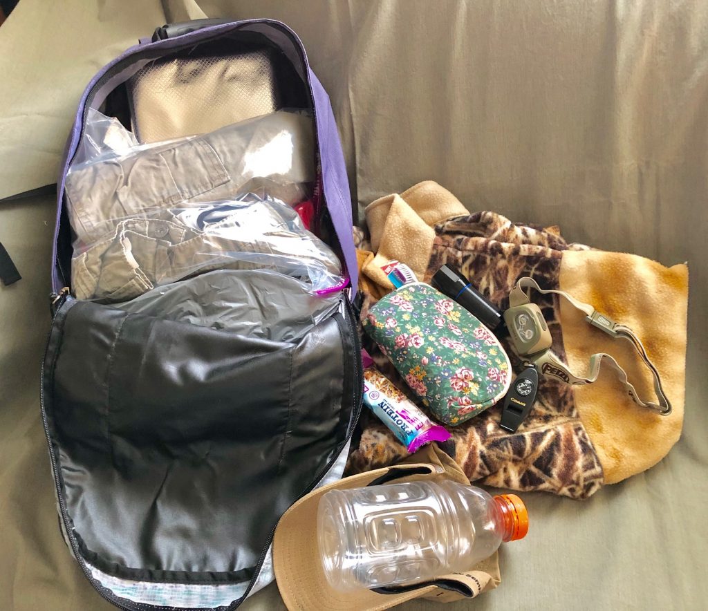 I decided to use this daypack – even though I own other more tactical or camo options – because I didn’t want any casual observer of my car to think this dusky purple bag with the ink stains was anything worth stealing.
