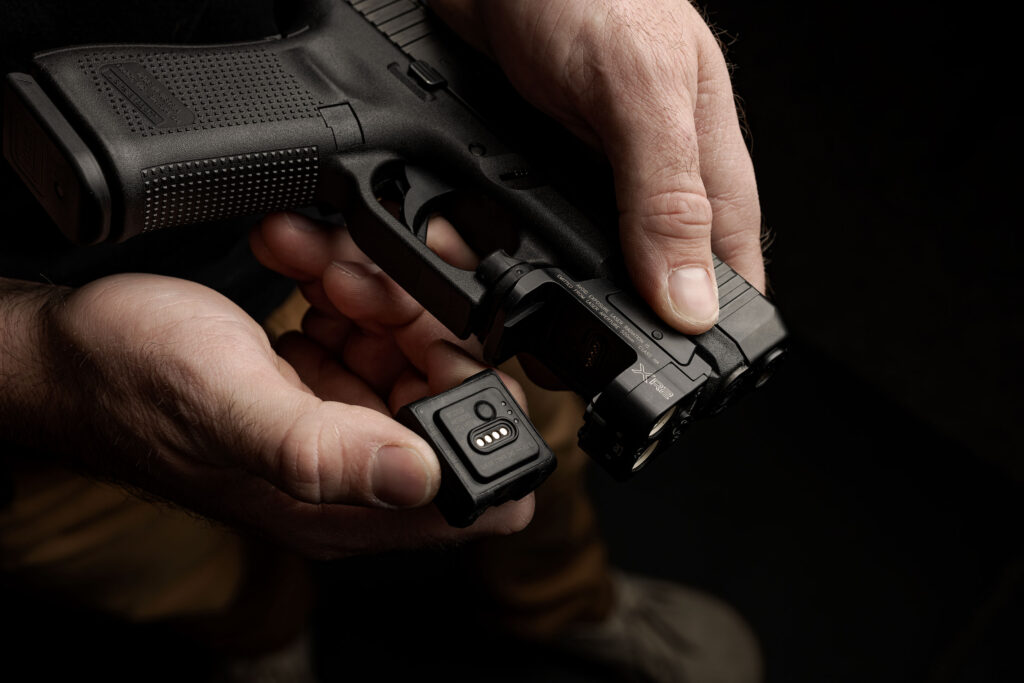 It has a battery-mounted fuel gauge that lets you keep track of your charge. That way you don’t have to guess when your light might go dead. The XR2 Compact Light and Laser comes with a charging cradle with two charging bays so you can always have a spare battery available to swap out.