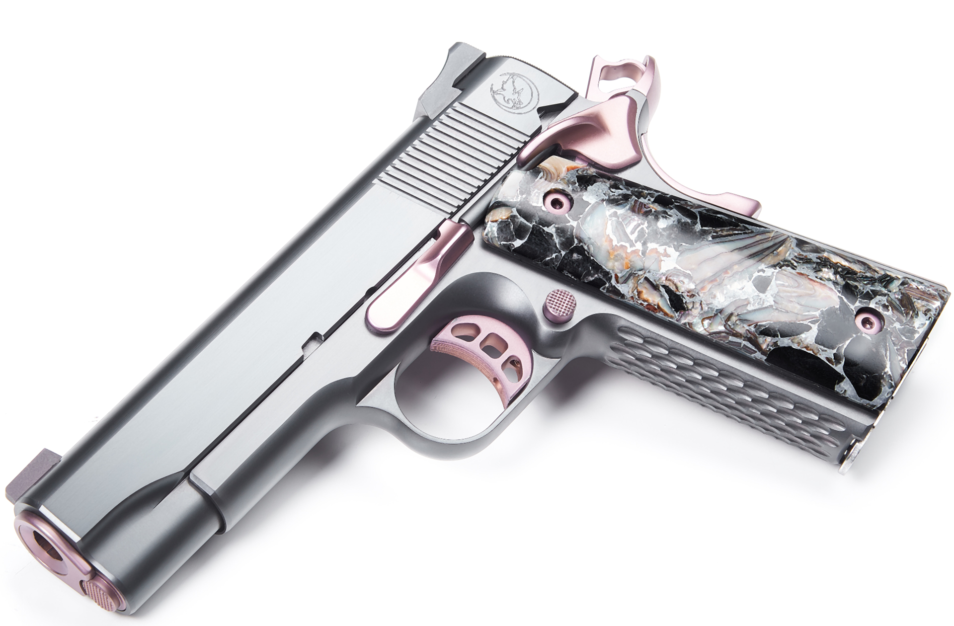 Available in both 9mm and .45ACP as no cost options this gun supports full powered modern ammunition in a thin framed package. What makes the Lady Hawk 2.0 different however is it’s aesthetic elements. Shooters have been asking for more feminine colors and styles to match the unique handcrafted craftsmanship. The Lady Hawk 2.0 marries modern coating options like DLC. Rose Gold TICN with Obsidian, Abalone and Zinc.