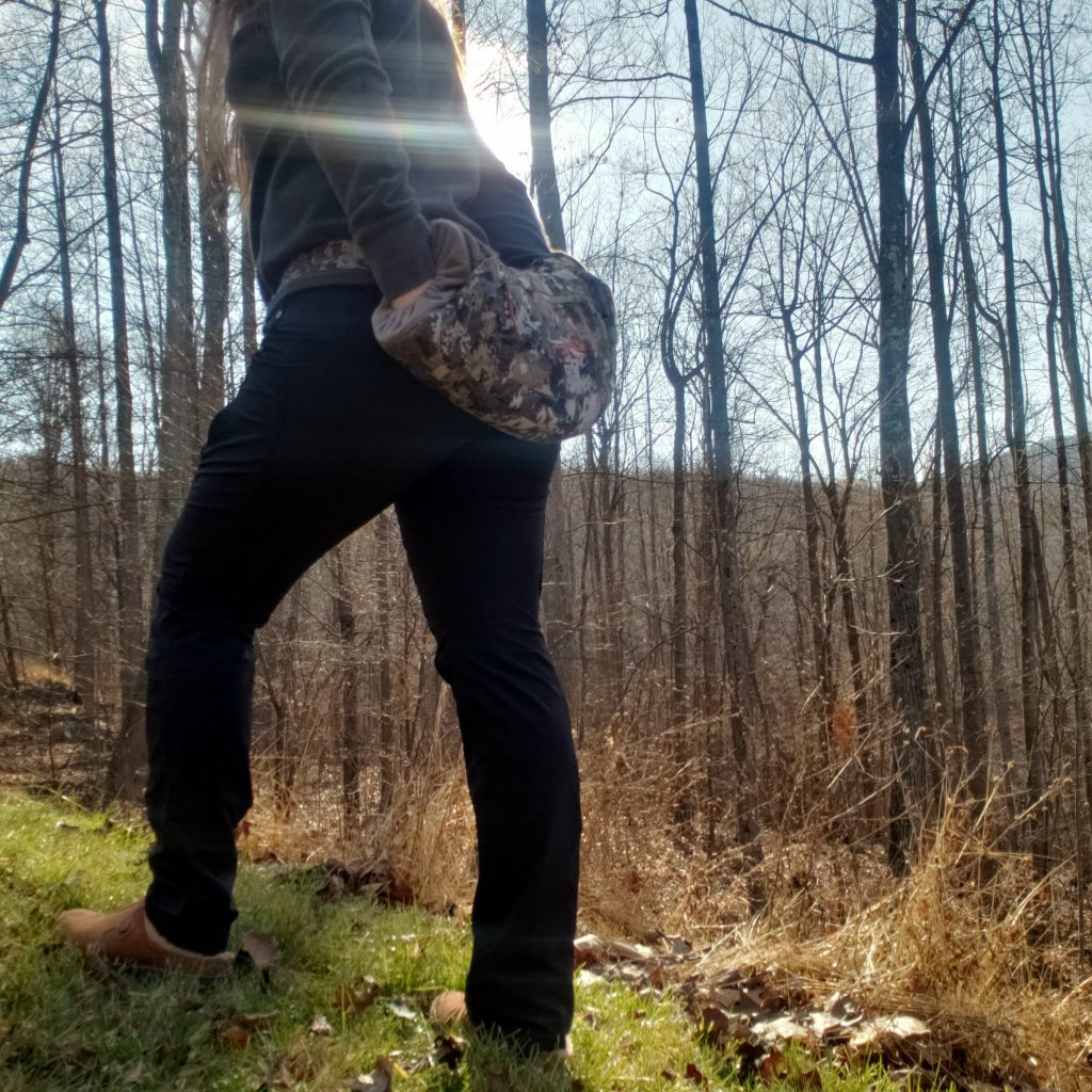 Most muffs come with a belt that will attach to the waist. Many hunters use muffs, and more shooters are starting to jump on that train. It can be spun to be in the rear of you not to get in the way or the front if you are sitting and waiting. Many types of muffs also have a pocket in which you can throw hand warmers in, both the shake kind and battery.