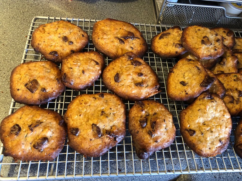 I was running out of store bought snacks so I decided to feed my sweet tooth with dandelion petal cookies. The petals lend a fibrous texture not unlike coconut. I added a chopped up dark chocolate bar – because pandemic means stress, and stress requires chocolate.