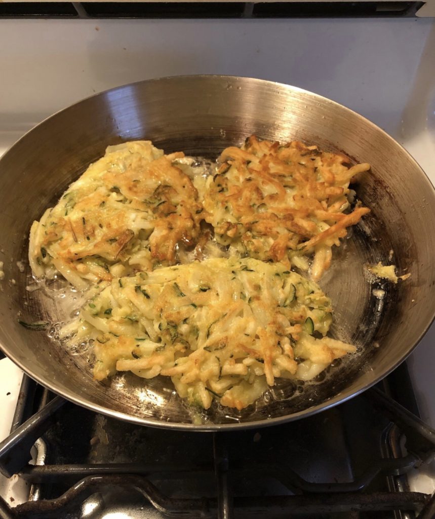 I was casting about for a side dish for the pan fried venison I had planned, and came up with this idea. I didn’t want “just” potatoes, so I hit upon using my dehydrated shredded zucchini combined with some frozen hashbrowns to make fried potato/zucchini cakes. I haven’t yet tried dehydrating shredded potatoes or I’d have used those instead of frozen. I altered an internet recipe, and they turned out great! Betty Crocker has a decent version here. I definitely need to try dehydrating shredded potatoes when this is all over (I’ve only done sliced so far).