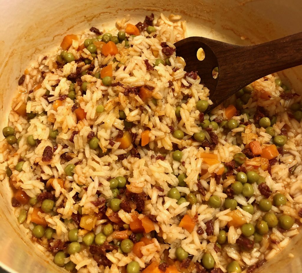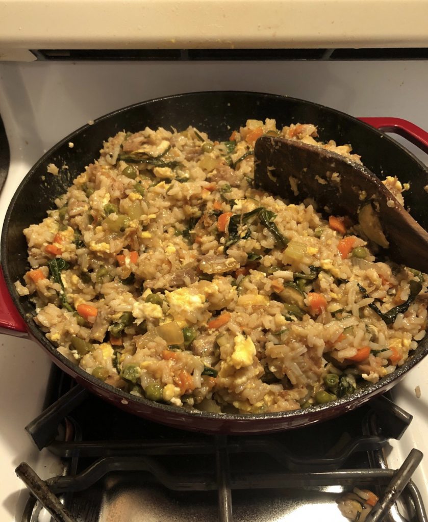 What do you get when you combine some boar chops left over from the instant pot, some of your dehydrated veggie stash, soy sauce and spices, some rice and some eggs? Boar Fried Rice. And it was heavenly.
