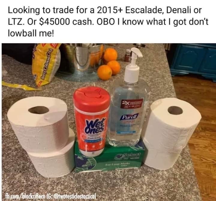 Those 3 who are SOL are like, “Wow! There really is a panic run on TP.” The other 2 were surprised the stock was so low and vow to get a little more when they can. You know… just in case.