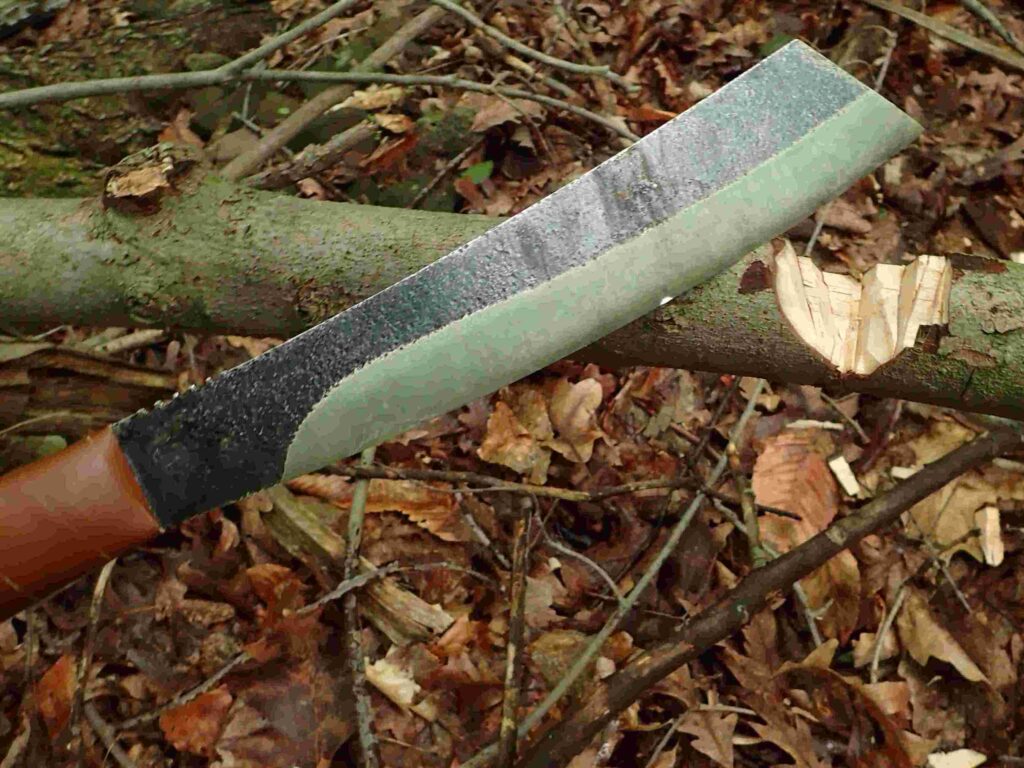 Kudos to Condor Tool & Knife for equipping the Impossible Machete with a convex grind. Unlike the common flat or hollow grinds, this design cuts smoothly without sticking. I tested it on a downed maple, and it sliced through effortlessly.