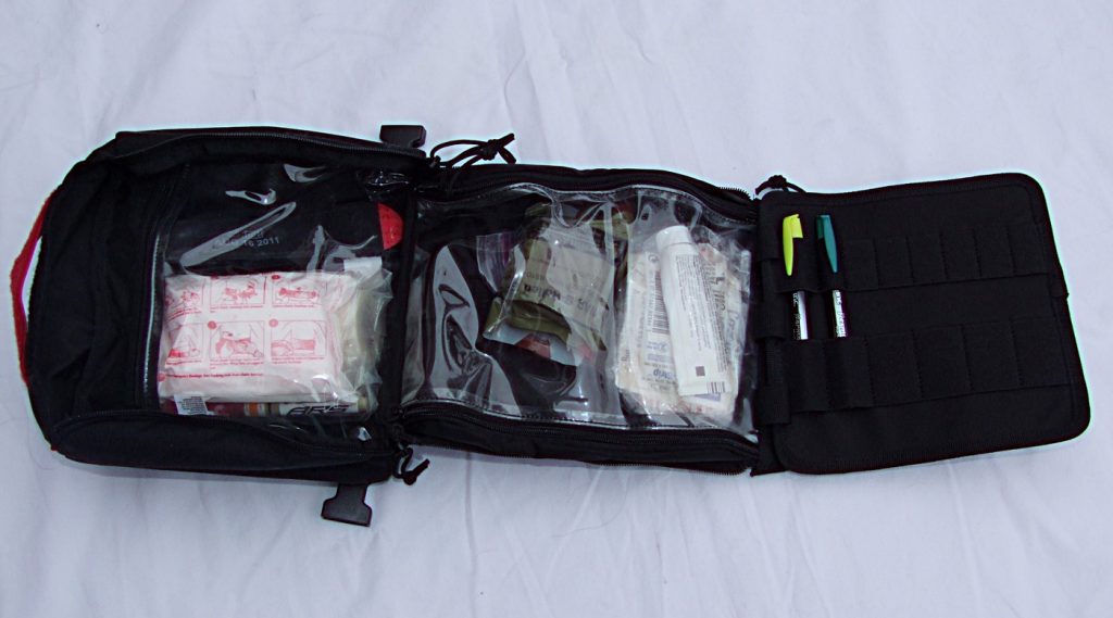 For my AMP24, I added the medical and admin panels. This way I could use the AMP24 for hiking or when being a tourist. Having easy access to a medical kit when out on the trails could save someone’s life or keep a cut from getting dust and grime in it. You never know what could happen or what you might need when you are out in the woods or up in the hills. Hopefully major hemmorage items will never be needed, but it is best to be prepared. Once you get away from trail heads a team of first responders could be hours away. I also pack a Sharpie, to mark the time on a tourniquet. This allows a paramedic to know how long the TQ has been on.