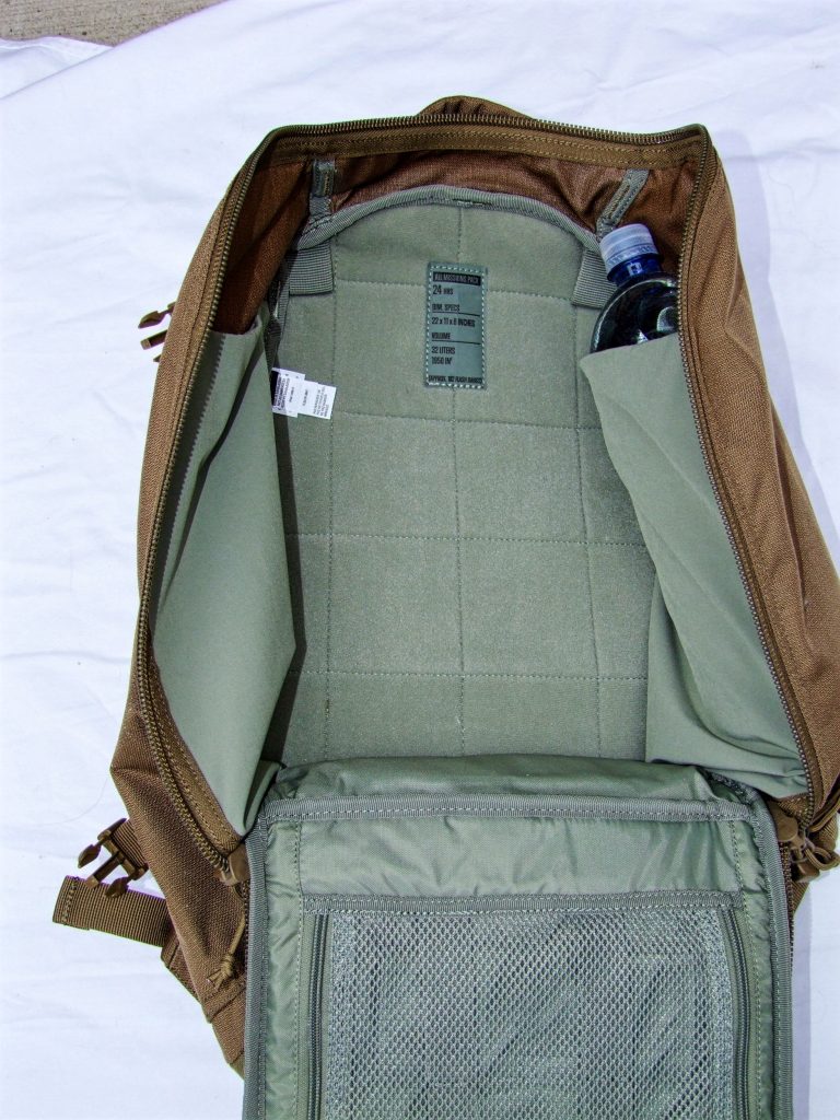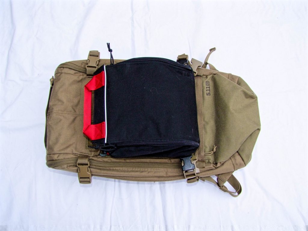 5.11 constructs the AMP’s body from 500 denier nylon and the bottom from 1050 denier. This combination ensures that gear will not tear through the pack and that it will be highly stain and water resistant. To further increase the pack’s resistance to the weather, 5.11 laminates its proprietary TAC-LAM to the nylon. I stuck the AMP 32L out in our recent rains for an hour and there was no water on the inside.