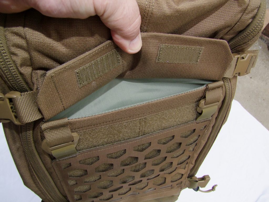 5.11’s biggest innovation on the AMP packs is the removable panel on the front of the pack. Each AMP pack ships with a Hex-Grid panel that allows you to attach various pouches to fit your needs. 5.11 has numerous replacement panels including a medical panel, admin panel and others. Under the attachment flap is on more pocket for frequent use items.