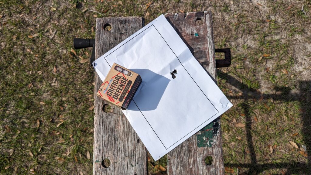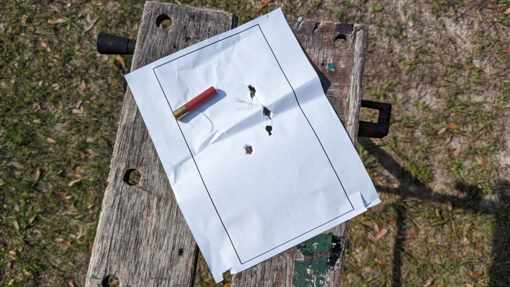 This Hornady load is a Judge-centric load that is designed around the rifled barrel of the Judge Home Defender. With this in mind, I assumed it would be a solid load for the Home Defender. I was right, and the pellets and slug grouped well together when patterned. It’s like the Flite control for the Judge Home Defender.