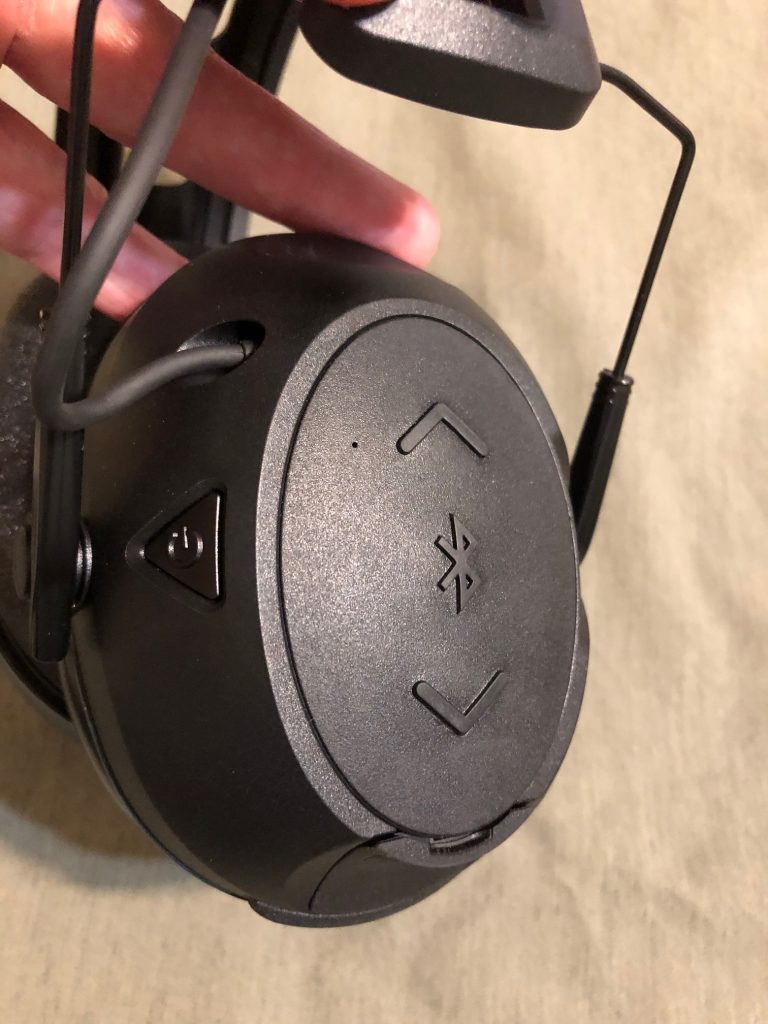 The on/off button on these ear muffs is easy to find by feel, and gives an audible “Power on”/“Power off” voice confirmation. The volume controls are also easily palpable on the right ear cup while the muffs are being worn. I like that I don’t have to take them off in order to fumble with buttons. Having to take your muffs off to mess with them kind of defeats the purpose of ear protection, ya know? No worries with this design.