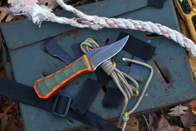 The author easily sliced through rubber tubing found on a trail, while nylon webbing and paracord proved ineffective with a chest-lever grip. The edge was made for both utility and chaos!