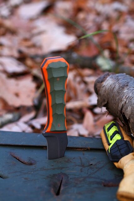 Plunged into an ammo canister, the blade and handle scales seemed unfazed after being hammered with a hardwood baton.