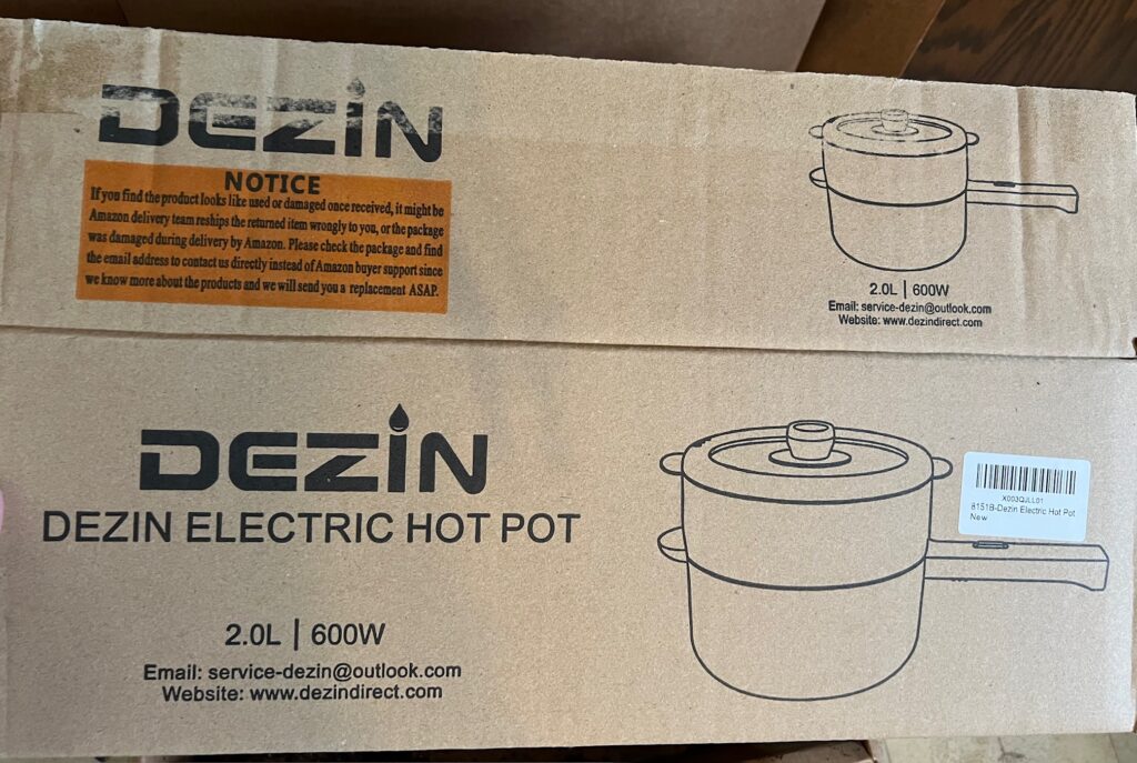 However, if you need your food or water boiling within a few minutes there are low-wattage electric hotpots all over the internet now. Mine is a 2-quart Dezin, which I got from Amazon a couple of months ago. It has a low setting at 300 watts and a high setting at 600 watts, both of which are in the range for my 1000-watt power station. My model also came with a handy steamer basket.