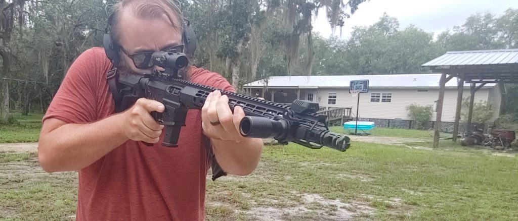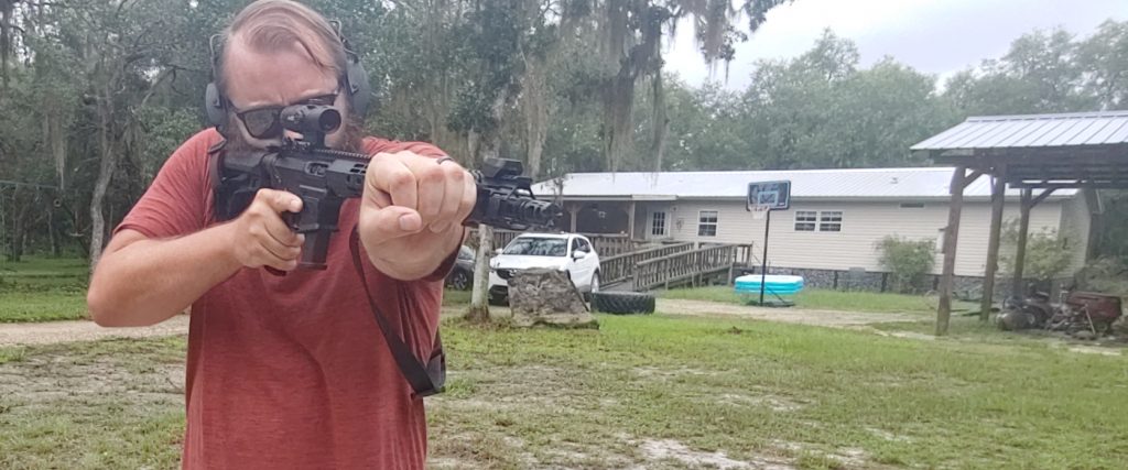 Sadly, I don’t have a Norm gun, but I have an Aero EPC in 9mm. It’s a PCC and not an SMG, but it does shoot 9mm and uses a direct blowback design. It’s a full-length AR15 upper build kit, and while I have braced pistols that are more or less the same size as the Norm gun, I’m not sure how the ATF feels about side-mounted grips.